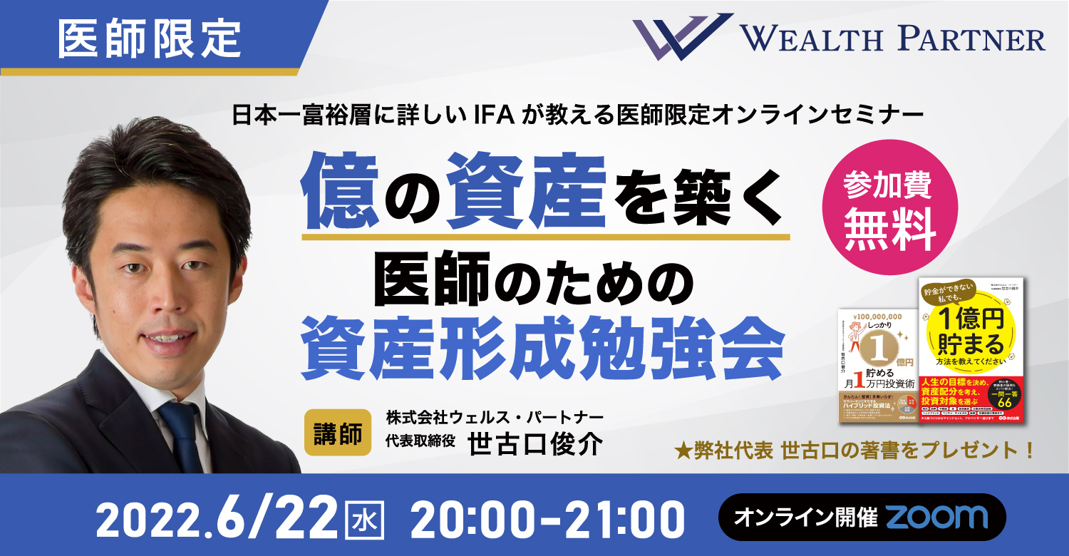 2022年6月22日(水)20:00〜21:00に当社主催のセミナー「億の資産を築く!医師のための資産形成勉強会」をオンラインで開催いたします。