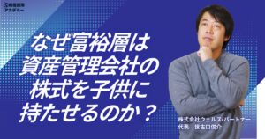 若い富裕層の方、会社売却富裕層・上場会社オーナーの場合は、お子様を株主にした「資本の薄い資産管理会社」を作ることが多いです。