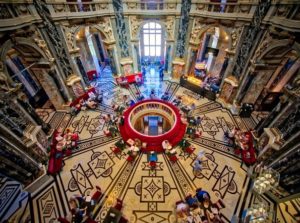 米国の大富豪ポーター・パーマー氏が妻に結婚プレセントとして建てたシカゴの豪華ホテルが、1871年のシカゴの大火災でオープン後13日で焼け落ち、4年後の1875年にホテルを建て直し、1925年には再建築されました。歴史的文化財に指定され、外観も内装も豪華絢爛なホテルのロビーバーで100年以上のホテルの歴史に思いを馳せてはいかがでしょう。
