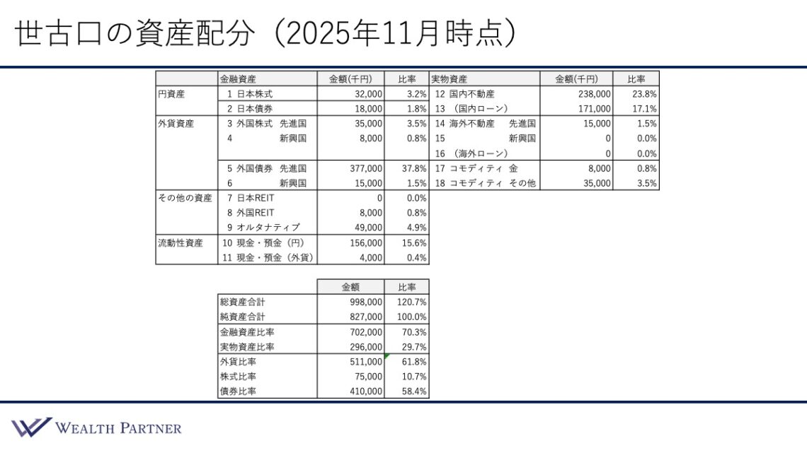 先ほどお伝えした資産配分は2025年の5月時点のものでした。そこから半年経過した2025年11月時点の資産配分を見ていきます。