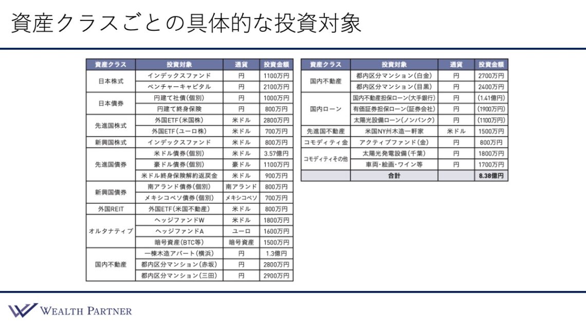 そのため、富裕層の方により広い選択肢をご提案するためには、「人体実験」として私自身があえてリスクを取り、手間のかかるものも含めた多様な資産へ積極的に投資し、実際に運用してみることで経験値を蓄えています。富裕層の方の資産を守るために学び続ける必要があるのです。このような運用目標を達成するための資産配分になっています。