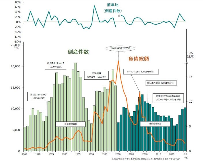 出典:帝国データバンク「倒産集計 2025年報(1月~12月)年別倒産件数推移」