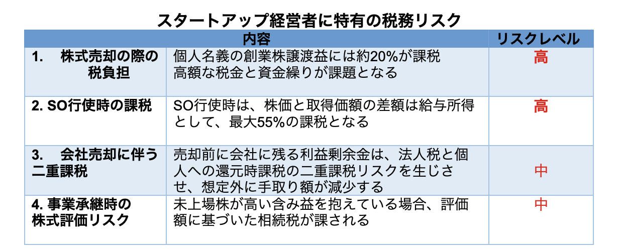 特に留意すべきは、給与所得に対する所得税率は最大で55%に達する可能性がある点です。そのため、事業の成長に伴い株価が急激に上昇した経営者ほど、想定外に多額の税負担が発生するリスクが高まります。