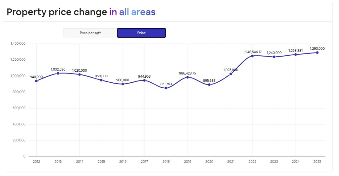 ※ドバイのアパートメント(マンション)物件価格の推移。単位はディルハム(約40円)