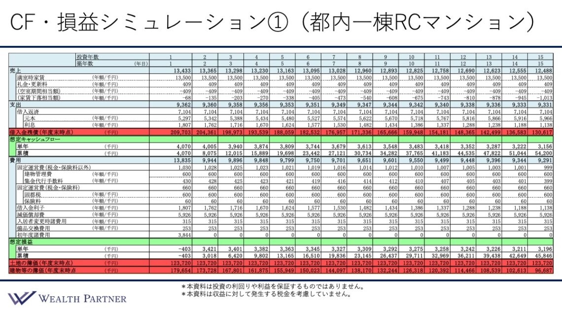 CF・損益シミュレーション①(都内一棟RCマンション)