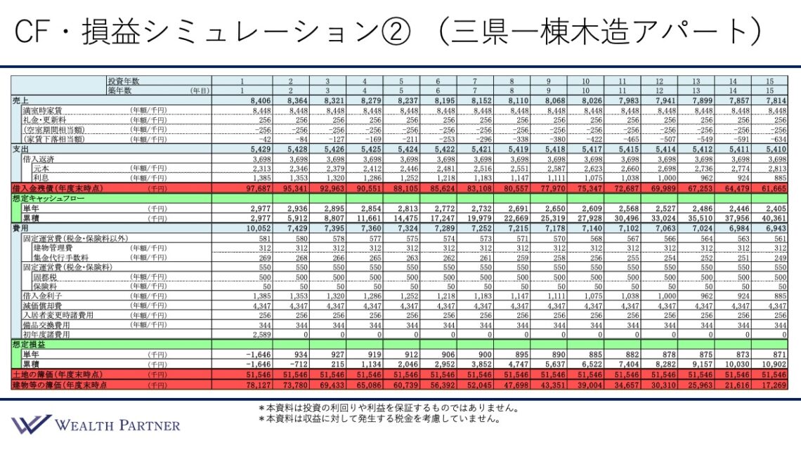 CF・損益シミュレーション②(三県一棟木造アパート)
