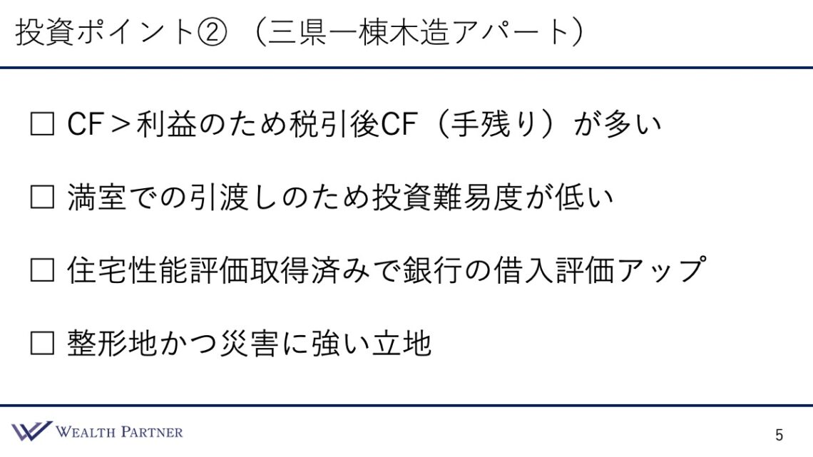 - 収益性・投資効果重視なら三県一棟木造アパート