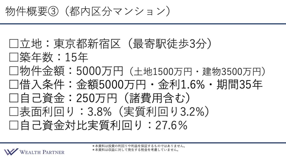 世古口「最後の3物件目の物件概要は都内区分マンションになっています。」