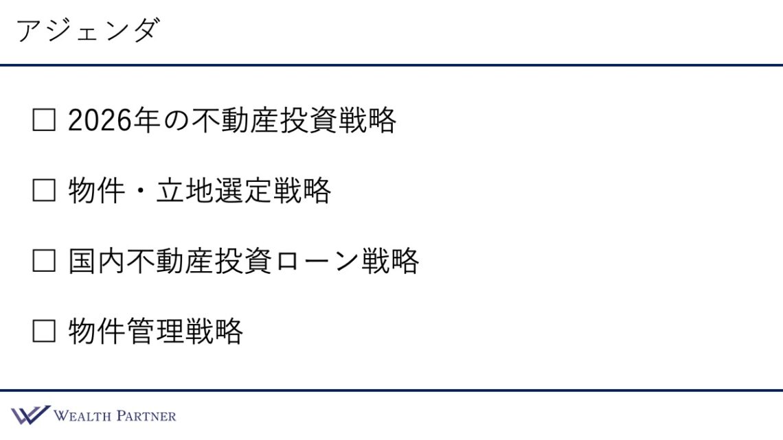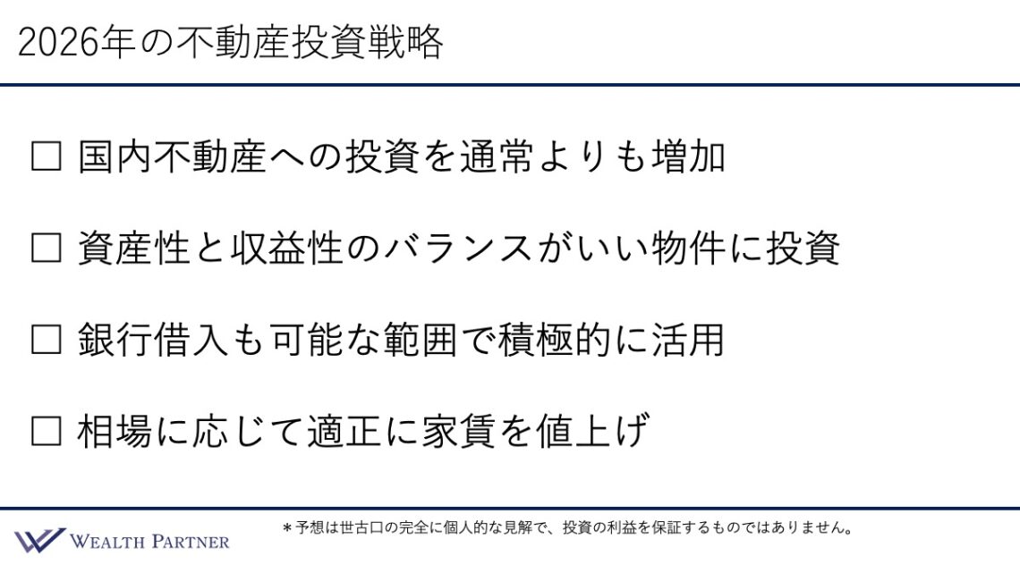 それではさっそく2026年の不動産投資戦略についてお話していければと思います。