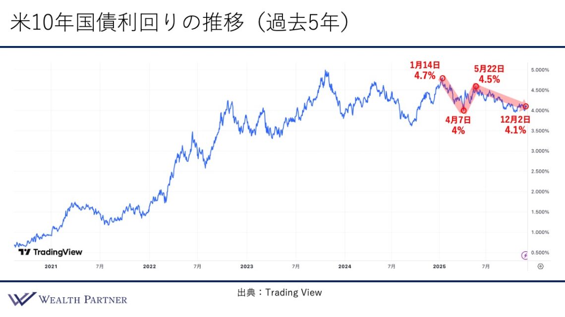 ポイント1)米10年国債利回りは低下しつつまだ4%台はキープ
