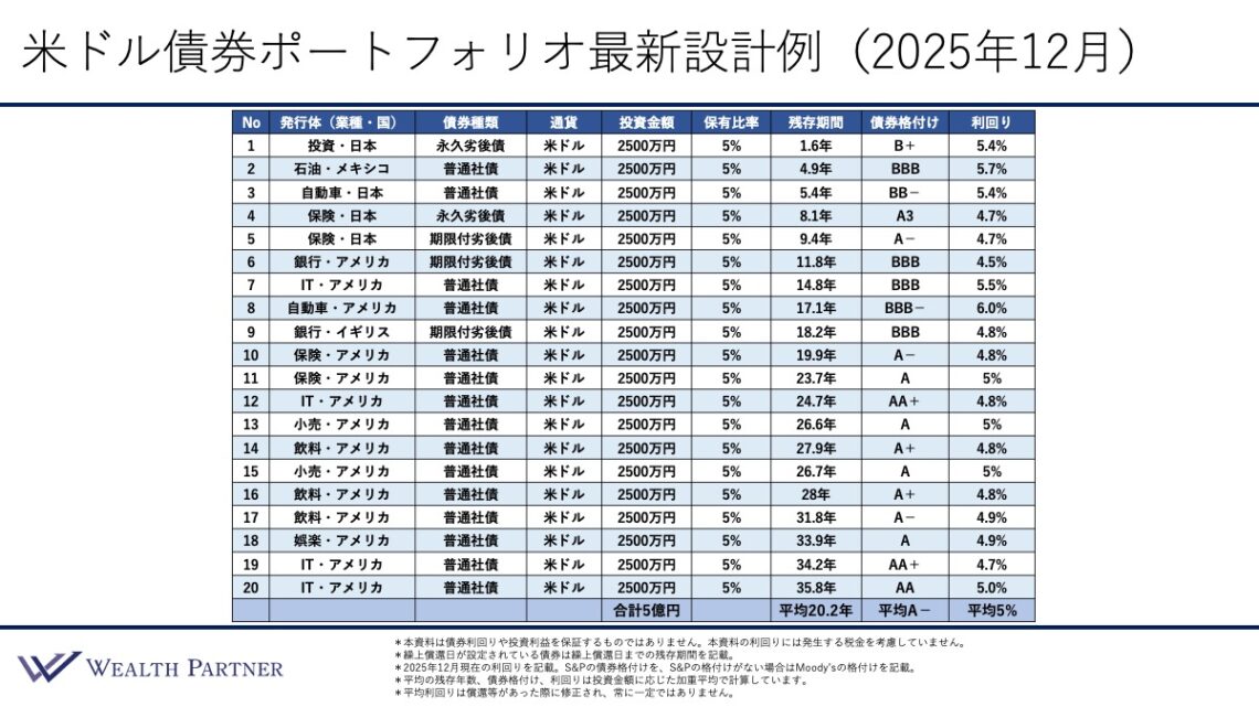 米ドル債券ポートフォリオ最新設計例(2025年12月)