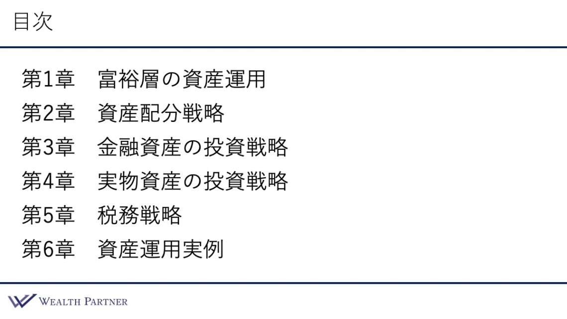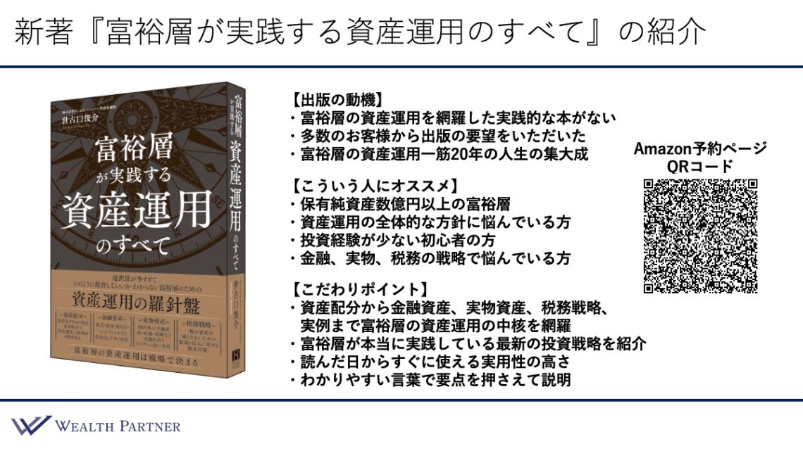 実際に富裕層の方はこうしていますので、こうするのがいいのではないか。こういう方が多いです。こういった本当に現場の富裕層の方がどのように運用しているかという実践的な内容だけで最新の投資戦略を書かせていただいています。そういった意味で参考になるのではないかと思います。